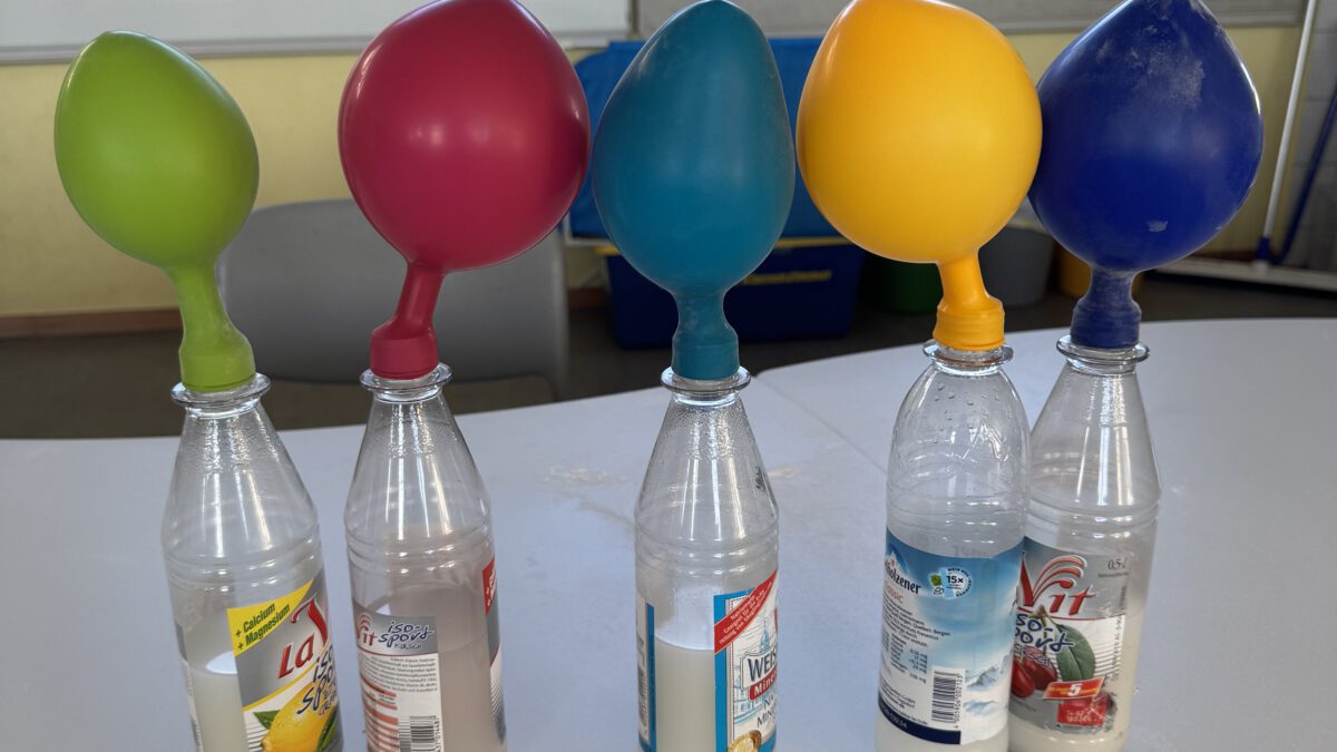 Zum einen können die Kinder spielerisch naturwissenschaftliche Phänomene durch kleine Experimente entdecken. So haben wir zum Beispiel Backpulver und Essig miteinander gemischt und beobachtet, wie sich ein Luftballon durch die entstehende Reaktion von selbst aufbläst. Zum anderen fand ein Experiment statt, in dem wir Rotkohl gekocht und das gefärbte Wasser als natürlichen Indikator genutzt haben. Durch das Mischen mit Natron und Zitronensäure konnten die Kinder sehen, wie sich die Farbe verändert. Mit den entstandenen Farben durften sie anschließend auf Papier malen und ihrer Kreativität freien Lauf lassen.